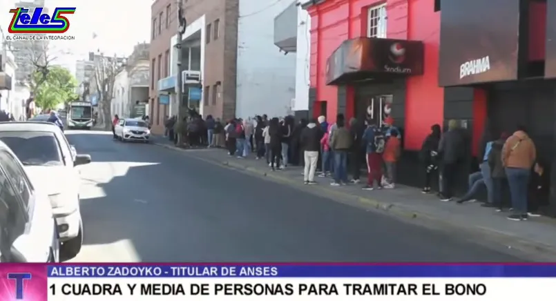 En la vereda de las oficinas de Anses Concordia, un centenar de personas hacía fila para poder tramitar el bono de 94 mil pesos destinado a trabajadores informales. Quienes tienen un turno asignado no deben realizar la fila, aclararon desde la entidad.