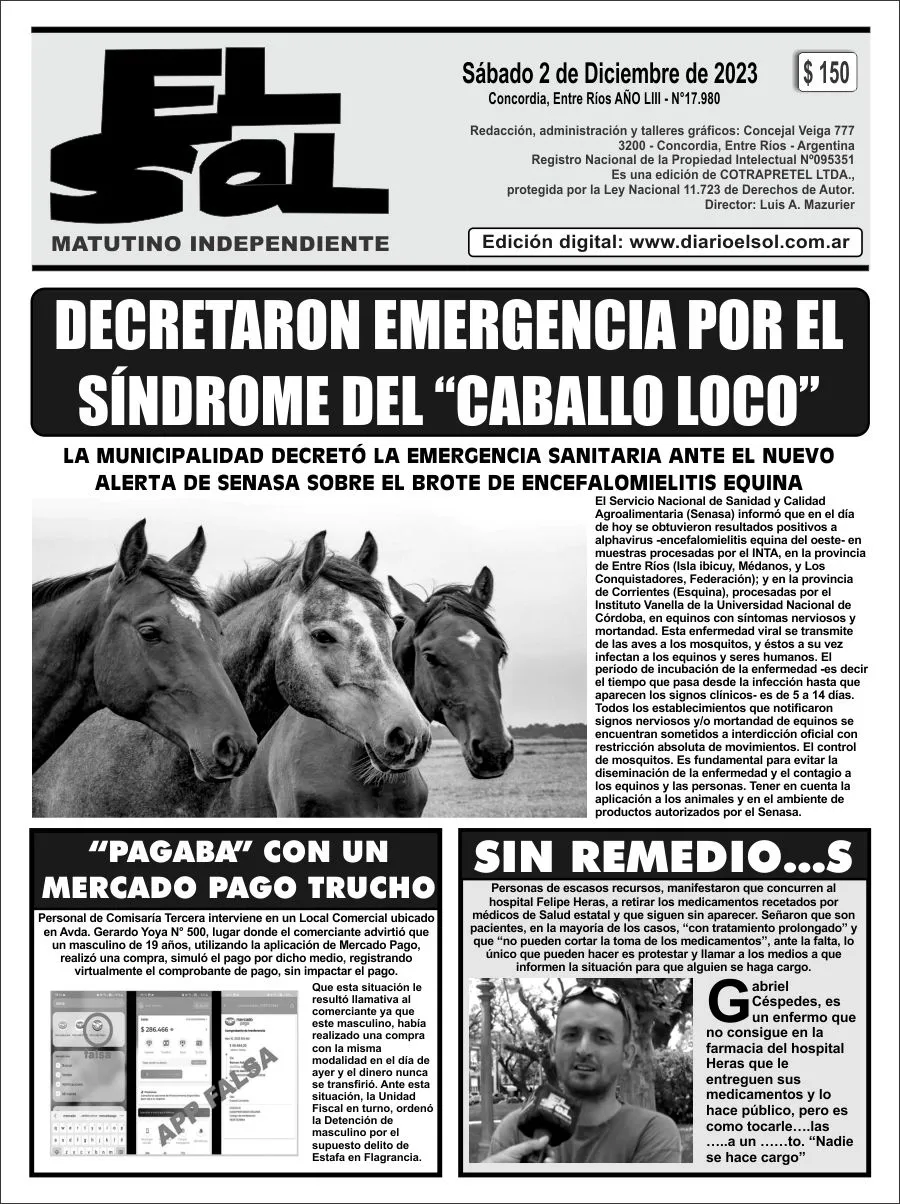 Tapa Edición Impresa - Sábado 2 de diciembre